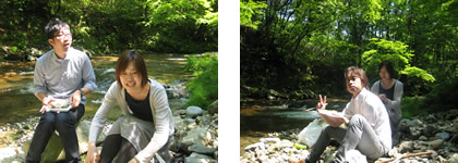 新緑に囲まれた川原で食べるおにぎりは格別でした!